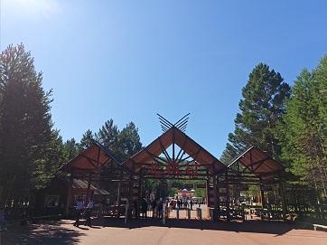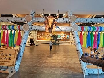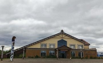 中午时分,我们在十八站林业局附近停靠用餐。这座因古驿站而得名的小镇,至今保留着浓郁的林业文化气息。餐后步行至附近的鄂伦春民族风情园,一座座尖顶的撮罗子(圆锥形帐篷)错落有致地分布在白桦林间。园区内的民俗馆陈列着桦树皮船、兽皮服饰等珍贵文物,也让我们深刻理解了"鄂伦春人过去都是'树栖民族',夏天住桦皮船,冬天住'斜仁柱',跟着驯鹿迁徙。"