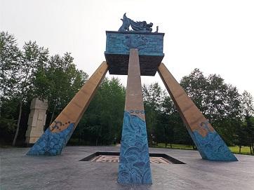 10日清晨,七星广场中央的北斗七星雕塑在晨光中闪闪发亮。乘船游览黑龙江时,两岸景观截然不同。