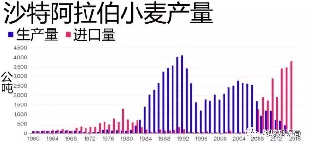 自1970年代沙特开始大力发展农业起,沙特的小麦产量已从1970年代的20多万吨,陡增至1990年代的450多万吨,其中还有160万吨可供出口,沙特完成了从粮食自给自足的目标,并一度进入出口小麦大国行列。这对一个沙漠国家来讲,其粮食增产的速度是令人钦佩的。