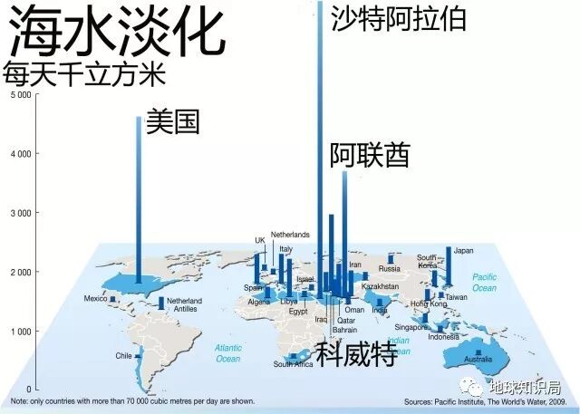 海水淡化是水来源最为丰富且持续的方式,然而由于能耗极高,所以海水淡化需要大量资金与技术,不过坐拥全世界最高石油产量的沙特可不差钱与能源,只缺技术。